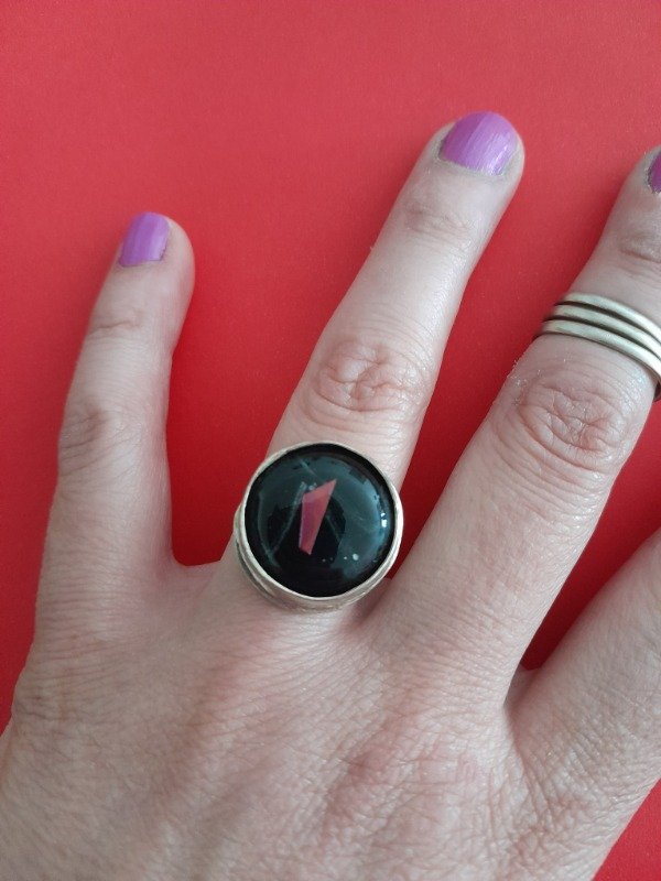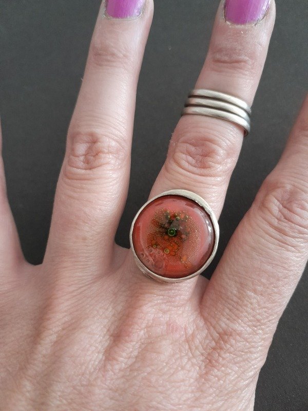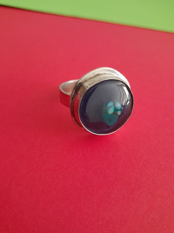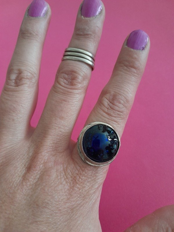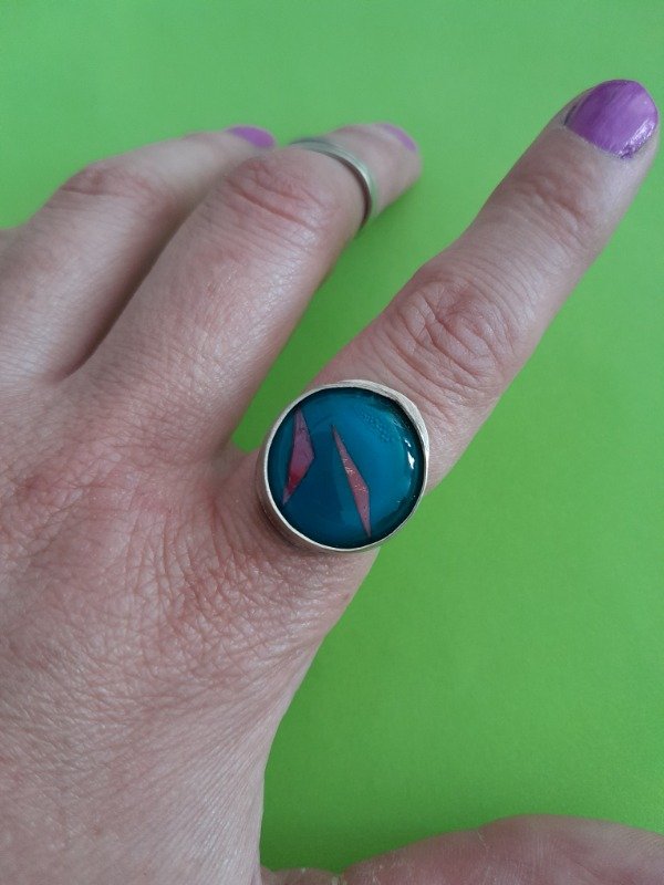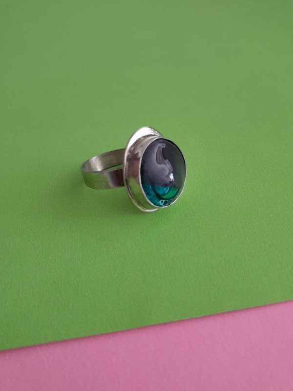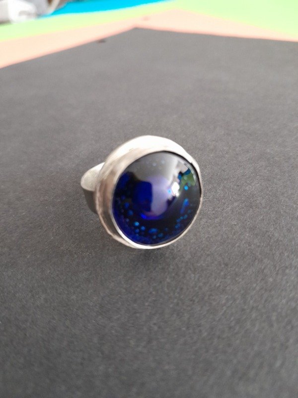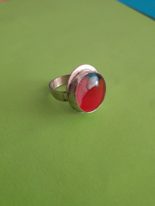 Anillos Regulables escondido para evitar que se enganche en la ropa son de Alpaca y detalle de color en Vitrofusión.